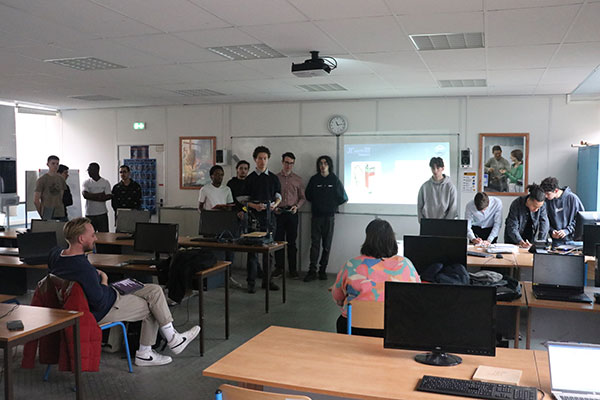 Dans le cadre d’un projet ludique inspiré du jeu du Quillou, les étudiants de 1ʳᵉ année de BTS ont relevé un défi technique : concevoir et expérimenter un lanceur de palets miniature, avant de défendre leur réalisation devant un jury de 2ᵉ année.